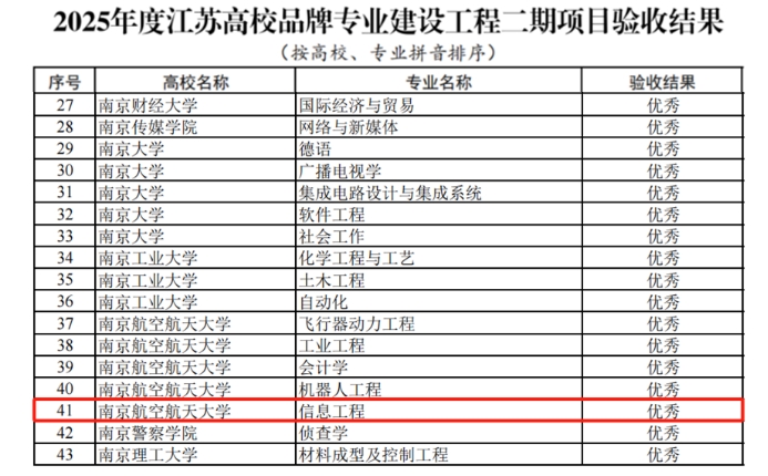 信息工程专业在2025年度江苏高校品牌专业建设工程二期项目验收中获评“优秀”